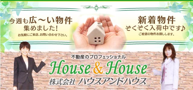 大和市で不動産の購入、売却をお考えならハウスアンドハウスにご相談ください。不動産取引は頻繁に行うものではないからこそ、不安に思うことも多いでしょう。ハウスアンドハウスは、「得をしないこと」「求められる仕事をする」を経営理念に掲げ、お客様の主義、利益、暮らし、幸福、喜びをいかなる時にも第一優先に考え、お客様の信託に応えられるようスタッフ一同努めています。新築・中古戸建て、マンションなど豊富な物件を取り扱っていますので、まずはお気軽にご相談ください。