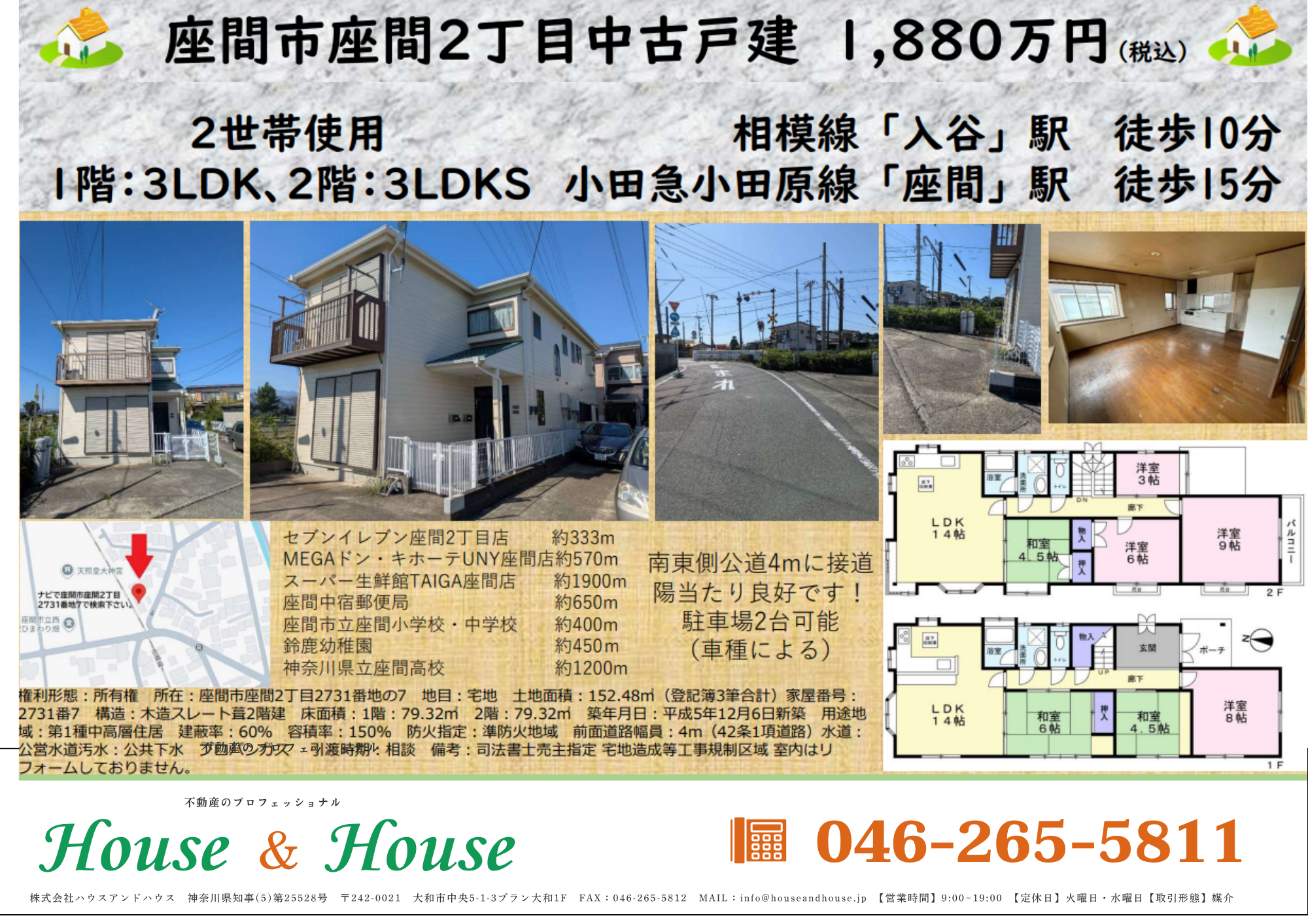 大和市で不動産の購入、売却をお考えならハウスアンドハウスにご相談ください。不動産取引は頻繁に行うものではないからこそ、不安に思うことも多いでしょう。ハウスアンドハウスは、「得をしないこと」「求められる仕事をする」を経営理念に掲げ、お客様の主義、利益、暮らし、幸福、喜びをいかなる時にも第一優先に考え、お客様の信託に応えられるようスタッフ一同努めています。新築・中古戸建て、マンションなど豊富な物件を取り扱っていますので、まずはお気軽にご相談ください。